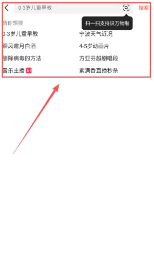 4、如果想找特定内容,记得使用搜索功能呀,输入你想找的内容或直接点击推荐词就能快速查找。