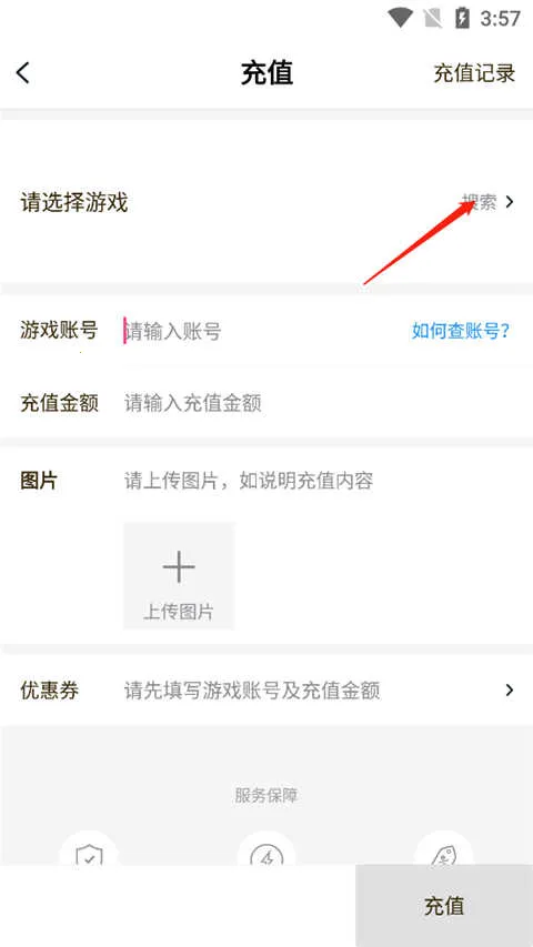 3、输入你想要的游戏名后,选择游戏fan充值游戏平台;
