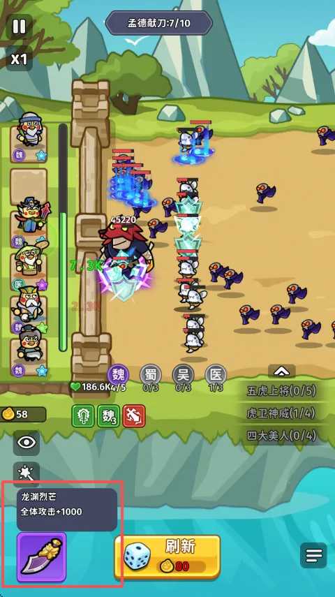 3. 多样玩法:抽卡塔防模式,玩家抽取武将卡牌抵御敌人,还有丰富羁绊效果,如集齐刘备麾下五虎上将可激活羁绊提升战斗力。