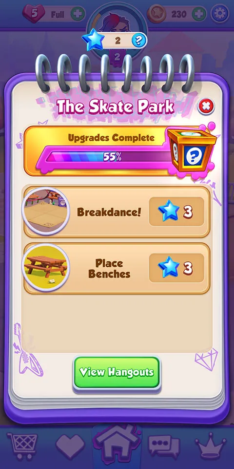 与喜爱角色一起消除爆破、装饰聚会场所。能破解免费谜题收集星星,采用经典三消玩法,将相同颜色方块排列消除。完成任务获奖励、解锁高难度关卡,关卡有独特挑战目标,通关需策略技巧。可解锁不同角色和特殊道具助挑战。升级主界面场景元素,进度达 100 解锁新主题。获取宝箱方式多样,升级、通关一定数量关卡或场景元素升级进度满均可获得。还能组建团队赢特别奖励,支持离线游戏随时畅玩。