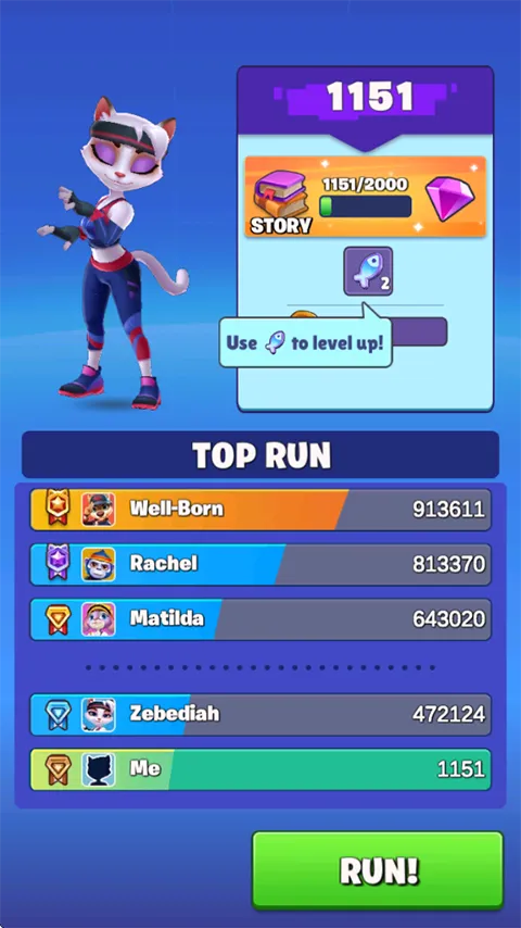 1、双击打开亚军英雄手游,点击RUN来进行跑酷;