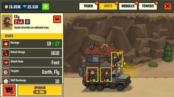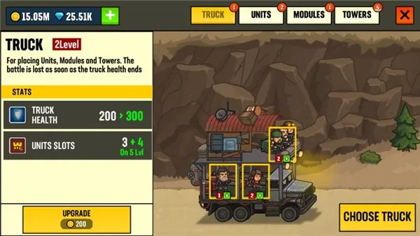 在营地防御游戏里,组建强大的中文破解版阵容超关键。这里角色能力各异,得摸透才能发挥更强实力。你能通过升级卡车解锁更多攻击区域,让更多人员上阵杀敌,扩大火力覆盖。升级车辆可提升血量,升级上阵角色能增强技能与攻击力。部分英雄角色还有专属技能,能量条蓄满点击图标就能释放。你还能通过TRUCK升级卡车、提升英雄等级、增加卡车位置数量。稳定的阵容能培养默契,让挑战更轻松。游戏画面卡通布局简单,很考验脑力。关卡众多,你得快速战斗取胜拿奖励。随着战斗节奏提升,还能解锁更多武器。有了强大的中文破解版阵容,就能更好地在僵尸入侵时保护营地,轻松应对各种挑战,享受游戏乐趣,成功抵御一波又一波的僵尸攻击,赢得胜利。