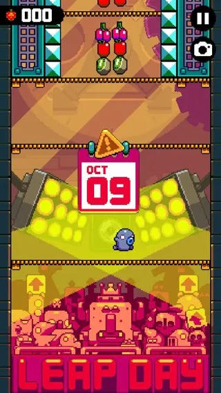 天天飞跃是Nitrome推出的像素风跳跃闯关游戏。玩法简单有挑战,另类算法每日生成新关卡。玩家跳跃收集水果激活存档点,达奖杯点可获日历标记,还有无尽模式,像素路线清爽,音乐欢快,兼具策略与趣味。