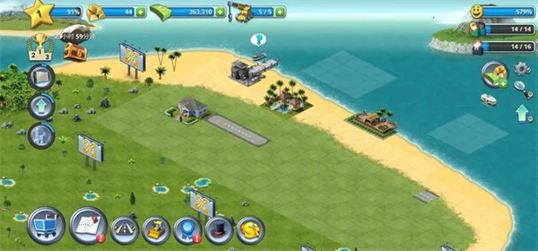 3、独特的解锁与发展:通过升级解锁不同岛屿,城市可建在旅游天堂岛、火山岛等多种地形上,从村庄开始慢慢发展成大都市,还能收集经验升级解锁新建筑。