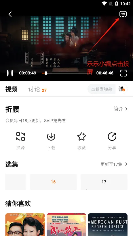 3. 贴心功能:支持高清投屏与离线缓存,自动保存观看进度,还能根据用户观影记录和喜好智能推荐符合口味的影视作品,让观影更便捷随心。