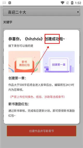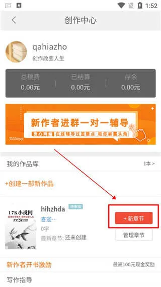 再重新进入创作中心,点击编写新章节;