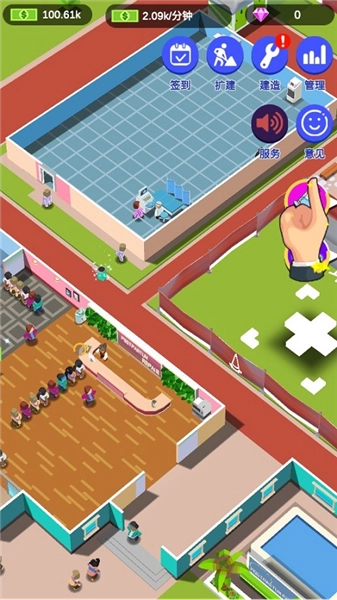 5、若想进一步拓展医院的经营空间,为孕妇提供更全面的服务,可通过点击右上角的扩建、建造功能来扩大医院面积。