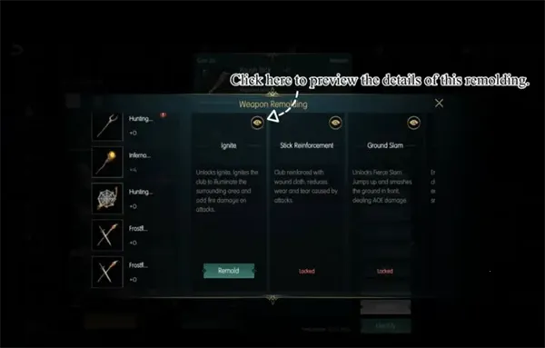 冒险者可以随时预览武器特定重塑的细节,例如所需的材料、重塑后的属性。有了这些信息,您可以更好地决定是否需要进行这种重塑。