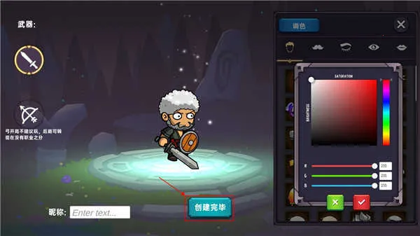 2、点击“调色”功能,可对头发、服装、武器等部位进行精细化色彩调整,打造专属视觉风格。